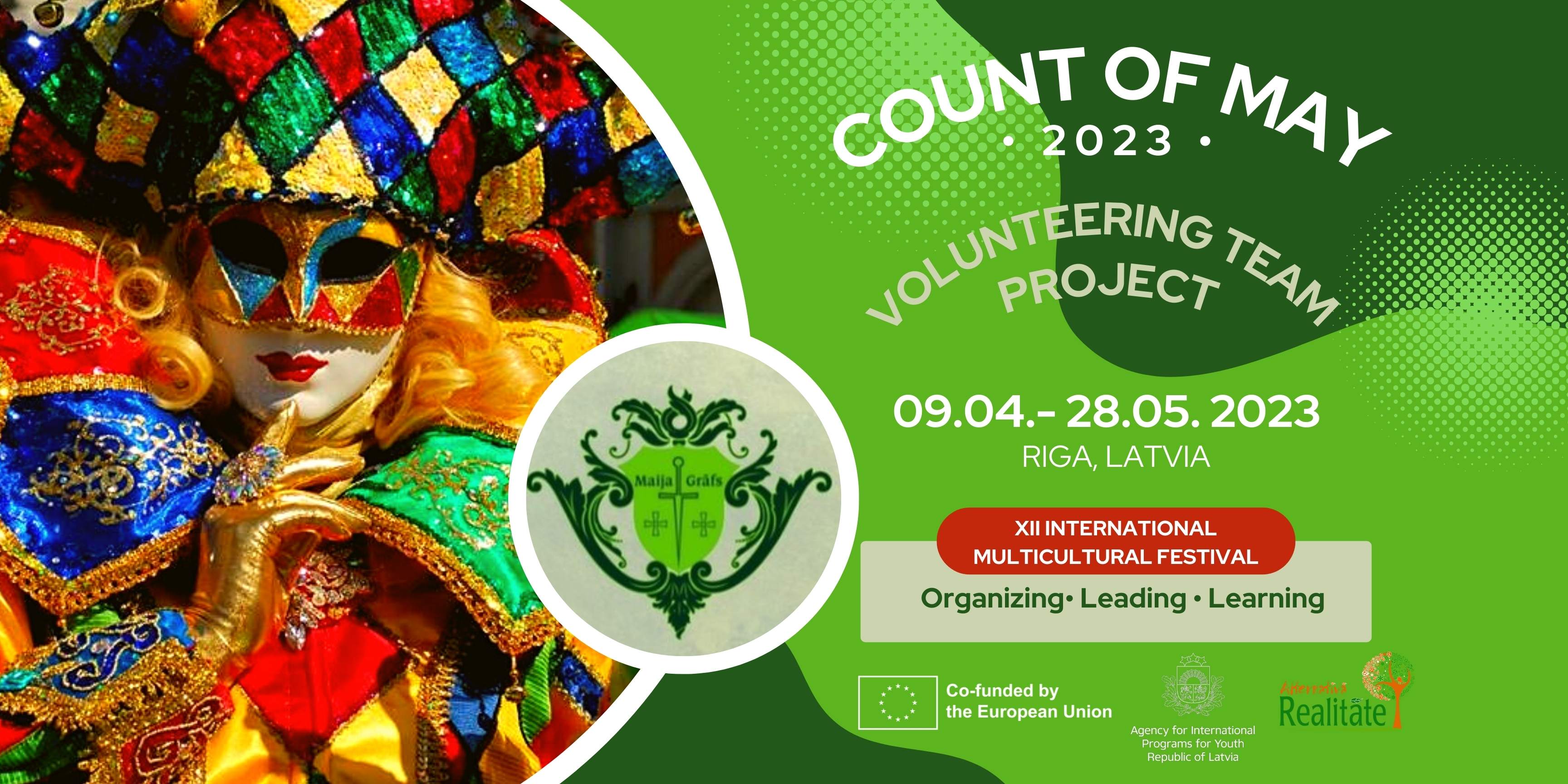 Приглашаем молодых волонтеров в возрасте от 18 до 30 лет принять участие в ежегодном волонтерском проекте «Майсий Граф 2023», посвщенном организации и проведению XII международного мультикультурного фестиваля Майский Граф 2023 в Риге .
